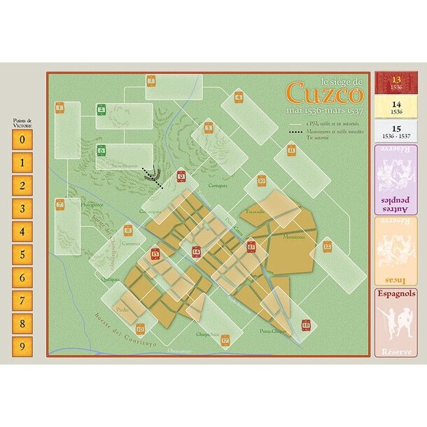 A The siege of Cuzco (Peru) 1536-1537 egy összetett kiegészítő a Pizarro 1532-1537: Conquest of the Inca Empire társasjátékhoz, 2 játékos részére, az átlagos játékidő rövidebb, csak 45 - 60 perc. A társast, a bonyolultsága miatt, csak 15 éves kortól ajánljuk kipróbálni. A játékmenet erősen épít a terület mozgatás mechanizmusra.