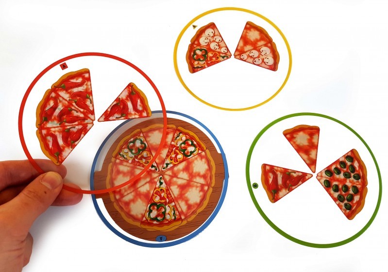 A vendégek vegyes ízesítésű pizzákat rendelnek, hogy megnehezítsék a dolgodat. Készítsd el a pizzát, amin a pizza szeletek különböző ízesítésűek!