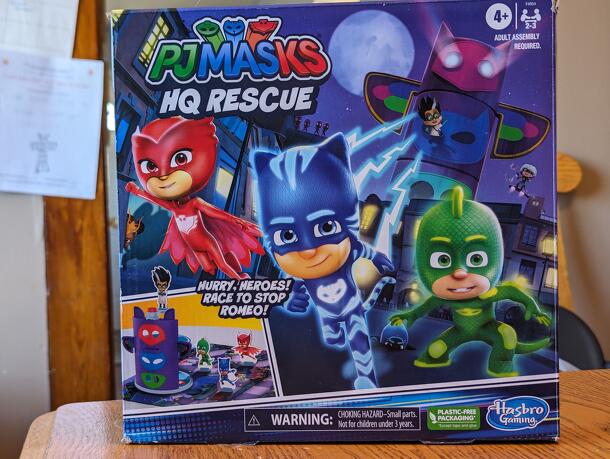 A PJ Masks: HQ Rescue egy remek társasjáték, 2 - 3 játékos részére, az átlagos játékidő rövid, csak 15 - 30 perc. A társas elsősorban gyerekeknek készült, akár már 6 éves kortól is játszható. Kooperatív jellegű, a játékmenet erősen épít a forgass és mozgass mechanizmusra.