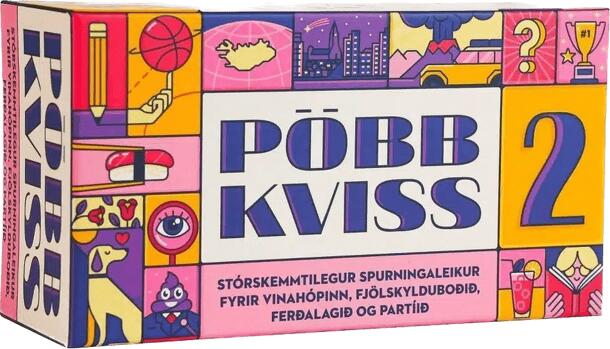 Pöbbkviss 2, the sequel to the highly successful Icelandic trivia game, is an entertaining choice for friend gatherings, family events, road trips, and parties. After the resounding success of the first edition in 2020, Pöbbkviss 2 brings 1,000 brand-new questions from various categories, including the addition of a new segment called "fivefold," which has gained popularity in the trivia show Kviss. The game accommodates an unlimited number of players and can be played in various ways. In the traditional version, players form teams, with one person taking on the role of the quizmaster. Teams write their answers on paper, and the team with the most correct answers at the end wins.