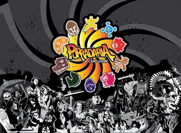 Inspired by the arcade games of the 1980's/1990's, Porradaria features characters with special abilities that battle against each other using weapon, battlefield, "punch" as well special cards and the final goal of the game is the elimination of the other characters. This is a 2 (two) deck card game, with 5 (five) characters in each deck, which can be played by 2 to 5 players with 1 deck, or up to 10 players with 2 decks.