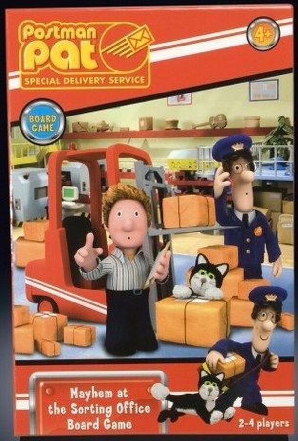 A Postman Pat Mayhem at the Sorting Office Board Game egy nagyszerű társasjáték, 2 - 4 játékos részére. A társas elsősorban gyerekeknek készült, akár már 4 éves kortól is játszható. A játékmenet erősen épít a kollekció gyűjtés és a forgass és mozgass mechanizmusokra.