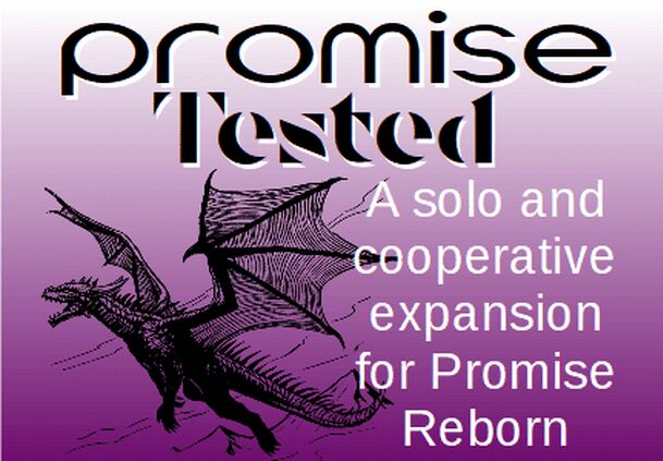 Promise Tested is a an expansion for Promise Reborn that takes the normal game and turns it into a solo or cooperative game. If you can Bury 10 Tests before there are 6 Tests in the Test pile, all the players win. Otherwise, the realms of Promise fall and all the players lose.
