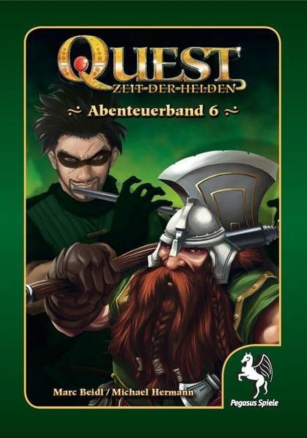A Quest: Zeit der Helden – Abenteuerband 6 egy könnyen tanulható kiegészítő a Quest: A Time of Heroes társasjátékhoz, 2 játékos részére, az átlagos játékidő rövidebb, csak 1 óra. A társast, a könnyebb tanulhatósága ellenére, csak 10 éves kortól ajánljuk kipróbálni. A játékmenet erősen épít a moduláris tábla, a váltakozó képességek, a kampány/harci kártya...