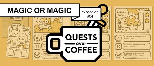 A Quests Over Coffee: Expansion 04 – Magic or Magic egy nagyon könnyen tanulható kiegészítő a Quests Over Coffee társasjátékhoz, 1 - 2 játékos részére. Kooperatív jellegű, a játékmenet erősen épít a kockadobás mechanizmusra.