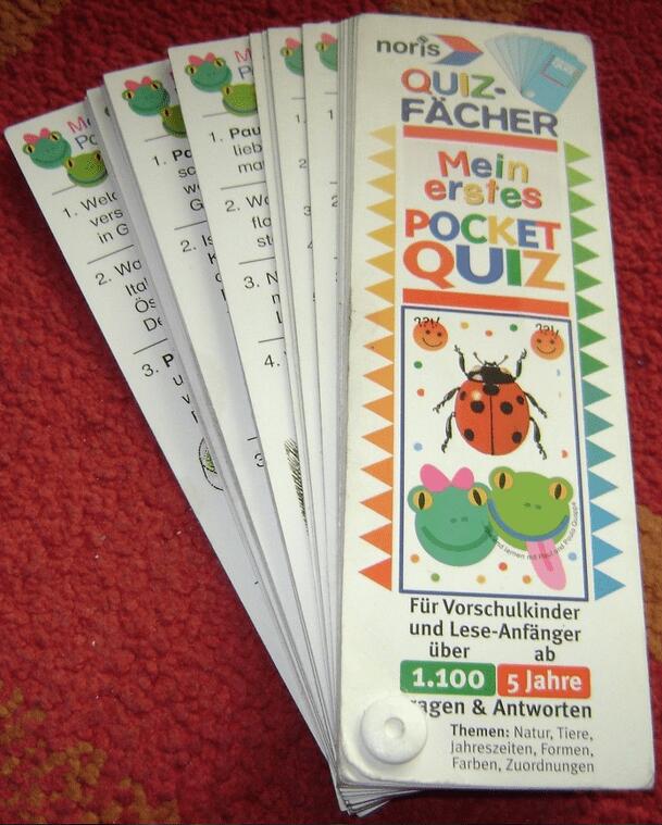 A Quiz-Fächer Mein erstes Pocket-Quiz egy kiváló társasjáték, 1 - játékos részére, az átlagos játékidő rövid, csak 20 perc. A társas elsősorban gyerekeknek készült, akár már 5 éves kortól is játszható.