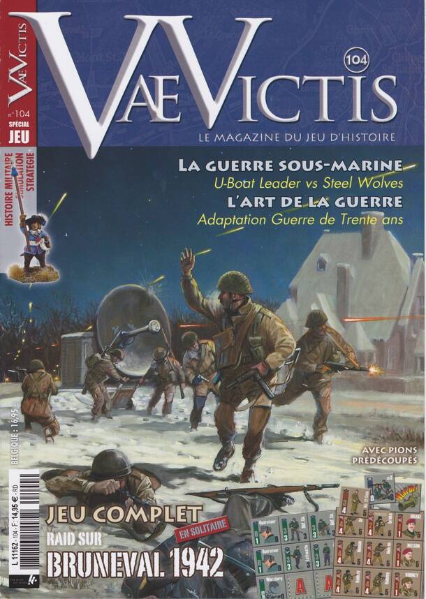 "Commando 4 en action: Dieppe 1942" is a solitaire tactical wargame appearing in the French Vae Victis magazine #131 (special game edition). It simulates the British commandos raid under Lord Lovat's command (Operation Cauldron) to destroy a powerful German battery (code name Hess) near Varengeville (in Normandy) during the famous August 19th 1942 Dieppe...