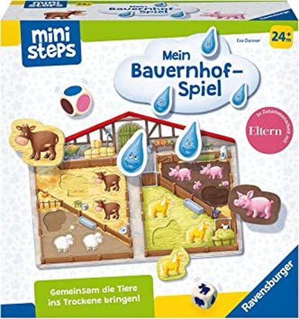 A Ravensburger ministeps: Unser Bauernhof-Spiel egy nagyon könnyen tanulható társasjáték, 2 - 4 játékos részére, az átlagos játékidő rövid, csak 5 - 15 perc. A társas elsősorban gyerekeknek készült, akár már 2 éves kortól is játszható. Kooperatív jellegű, a játékmenet erősen épít a kockadobás mechanizmusra.