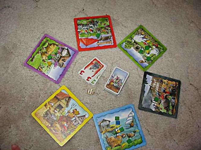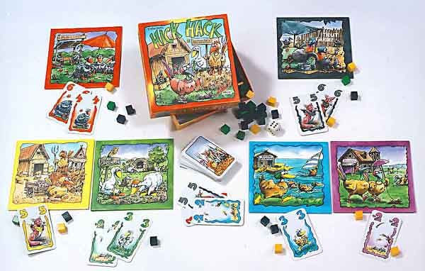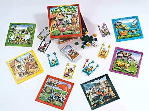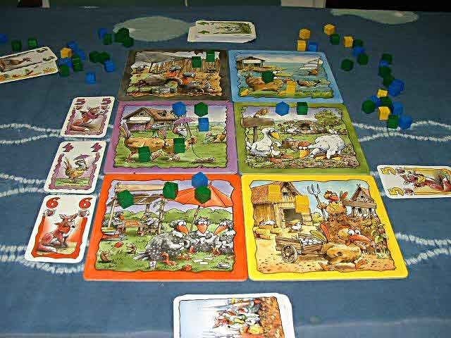 Valóban egyszerű játék gyerekeknek. A szerző egy korábbi játékának a Razziának egy újratematizált változata. A játékosok megpróbálnak annyi eleséget szerezni a csirkéiknek, amennyit csak tudnak, vagy bezavarni a rókát az ólba, hogy megegyék a többiek csirkéit! A különféle típusú szárnyasok csak a saját udvarukban esznek, melyeket, egy 12cm széles “udvarlap” jelöl. Az udvarlap széleinek színében található 60 kártyalap is a játék dobozában. Minden színből 10, melyből 7 darab, különböző értékű madarat ábrázol azonos fajtából és 3 rókát melyek csak a madarakat szeretik az adott típusból! Minden játékos kap 5 kártyát. Ezután mindenki eldönti melyik állatudvart (lapkát) szeretné meglátogatni a körében, ezt egy kártya (szárnyas vagy róka) lehelyezésével jelezve maga elé kártya képes felével lefelé. Ezután a kártyákat felfordítjuk: