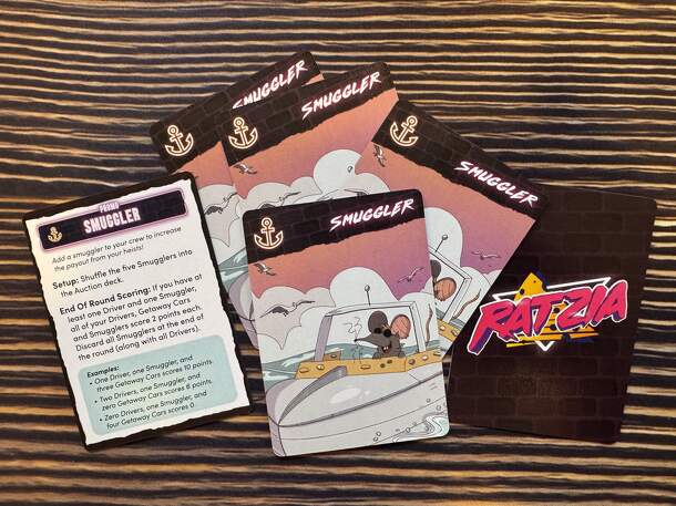 Promo expansion for Ratzia, adds another crew member to go along with your Drivers and Getaway Cars.