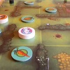 borzasztó egyszerű és gyors játék (mondjuk én ezeket preferálom, a baráti társaságban ezek mennek jobban), adott egy pálya, amire le kell pakolni a kétoldalas répakorongokat (egyik oldalán 1, másik oldalán 2 répa van), kapunk még 4 darab fa nyuszikorongot, 2 kutyakorongot, egy állás jelző táblát, egy teljesen felesleges kezdőjátékos jelző kártyát, jelölőket, 4 x 7 darab kártyát valamint NYUSZIBOGYÓKAT! fenomenális! :D nem tudom kinek jutott eszébe, de mikor realizáltam, hogy a kis fekete kockák tényleg nyúszibogyók 10 percig nevettem.