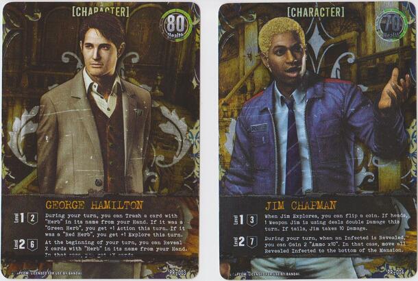 George Hamilton & Jim Chapman Promo will be available with Nightmare expansion. George Hamilton Level 1 (2): During your turn, you can trash a card with "Herb" in its name from your hand. If it was a green herb, you get +1 Action this turn. If it was a red herb, you get +1 Explore this turn. Level 2 (6): At the beginning of your turn, you can reveal X...