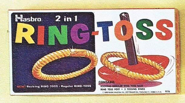 Indoor target game. Each player in turn will take the three plastic rings and try to throw them over the post. Most successes wins.