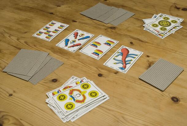 This is the most popular card game in Morocco. It is a fishing card game. It is played with 2 players (or 2 teams of 2 players). The play goes around the table counter clockwise....