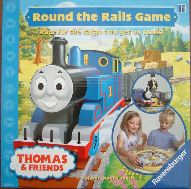 A Thomas & Friends game played on a circular, plastic track/board with a Fat Controller spinner in the middle. Contains a plastic Thomas the Tank Engine with two troublesome trucks, 4 color-coded lorry cards and 4 sets of 4 cargo cards.