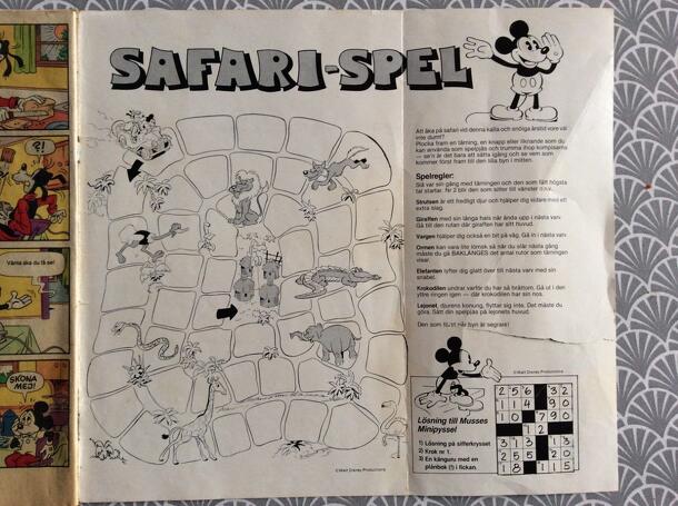 Safari-spel was in the comic book "Musse Pigg & C: o" No. 2, February 1983. Musse Pigg is the swedish name for Mickey Mouse.