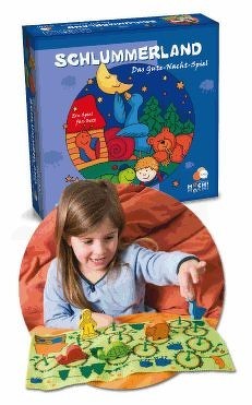 A Schlummerland egy remek társasjáték, 1 - 5 játékos részére, az átlagos játékidő rövid, csak 10 perc. A társas elsősorban gyerekeknek készült, akár már 3 éves kortól is játszható. Jóéjt játék filc játéktérrel, mely a takarón is használható. A kedves figurákat megtartják a mezők pöckei. Mesekártyák kérdéseire válaszolva lehet előre haladni, és az nyer...