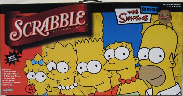 This was an exclusive for the Borders chain of US bookstores. It is completely distinct from the Scrabble: Simpsons Edition published by Mattel in the UK. A file with information on the differences between the editions is located at that game's entry.
