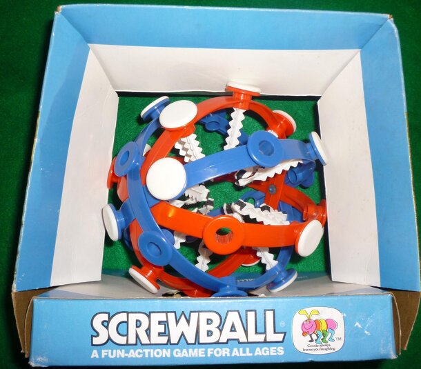 The second player puts another screw into the Screwball, just far enough to stay so it won't burst the balloon unless hit. He then tosses the Screwball to the next player. As play continues, catching the Screwball is more and more difficult as with each toss one more screw is added. The unlucky player who hits the screw on the head and breaks the balloon loses the game."