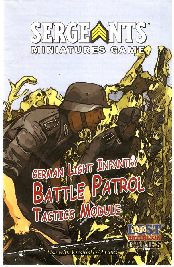 A Sergeants D-Day: German Light Infantry Battle Patrol Tactics expansion egy közepesen összetett kiegészítő a Sergeants D-Day társasjátékhoz, 2 - 4 játékos részére, az átlagos játékidő 1.5 óra. A társast, a bonyolultsága miatt, csak 12 éves kortól ajánljuk kipróbálni. A játékmenet erősen épít a kampány/harci kártya vezérelt mechanizmusra.