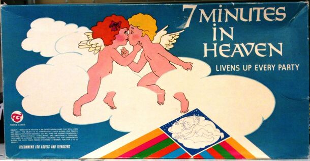 From the game box: "Seven Minutes in Heaven is an entertaining game that will liven any party. The object is to strategically race along love tracks and reach the finish squares. You will find the journey sensuously exciting, intellectually stimulating, and emotionally thrilling. This game is a unique "ice breaker", because the fun experienced along the love track makes everyone a winner."