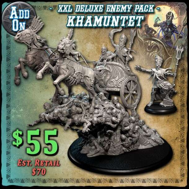 In the Cursed Tombs of Khamuntet Core Set (initially called Lost Tombs of Khamuntet), players take on the role of a group of 1930s pulp adventure Heroes, exploring the dark chambers and crumbling passages of ancient Tombs, in search of fortune and glory! Lost in the desert sands of Egypt for thousands of years, these cursed temples are overrun with...