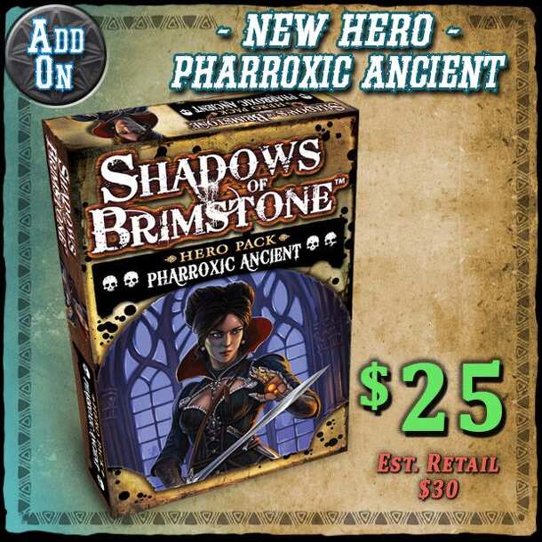 A Shadows of Brimstone: Pharroxic Ancient Hero Pack egy összetett kiegészítő a Shadows of Brimstone: City of the Ancients társasjátékhoz, 1 - 4 játékos részére, az átlagos játékidő hosszabb, akár 2 óra is lehet. Az alapjátékot 2014-ben jelölték a Golden Geek Awards díjára Legjobb egyszemélyes játék kategóriában, illetve szintén ebben az évben jelölték a...