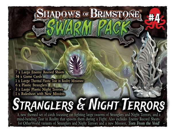 A Shadows of Brimstone: Swarm Pack #4 – Stranglers and Night Terrors egy összetett kiegészítő a Shadows of Brimstone: City of the Ancients társasjátékhoz, 1 - 6 játékos részére, az átlagos játékidő hosszabb, akár 1.5 - 2 óra is lehet. Az alapjátékot 2014-ben jelölték a Golden Geek Awards díjára Legjobb egyszemélyes játék kategóriában, illetve szintén ebben...