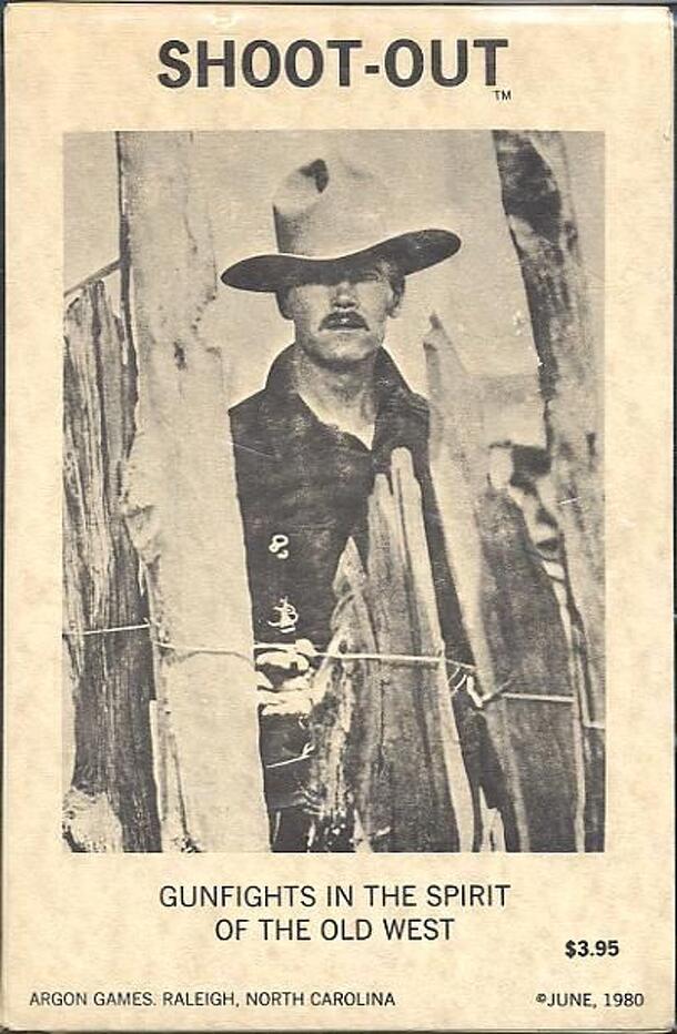 "Shoot-Out is a fast-paced, exciting game designed to allow the players to reenact the small scale gunfights that made the West infamous. The game is for two or more players, and most actions can be concluded in about thirty minutes."