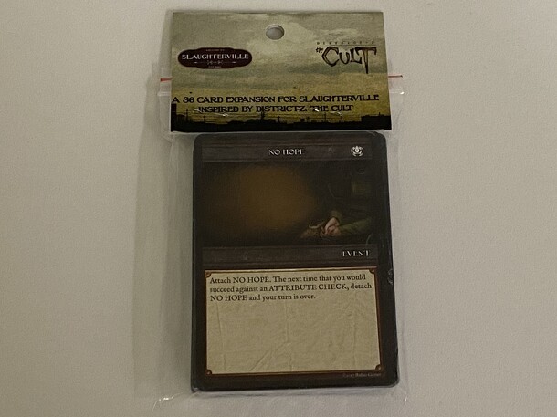 The Cult Invades is an expansion based on the single-player, choose your own adventure game District-Z: The Cult. This expansion brings the dangers of the Cult into Slaughterville showing how they have been in the background working this whole time.