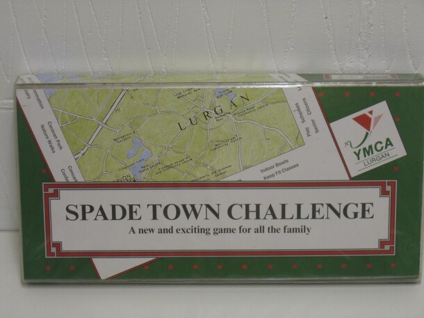 SPADE TOWN CHALLENGE is one of a series of Monopoly style board game developed by local YMCAs in the UK to generate funds for their activities. The games in the series are essentially the same, but as in the different versions of Monopoly, the board and the businesses are specifically themed to the town or city represented in the title - in this case the town of LURGAN in Northern Ireland. It is situated on the south shores of the Lough Neargh, 20 miles south-west of Belfast.
