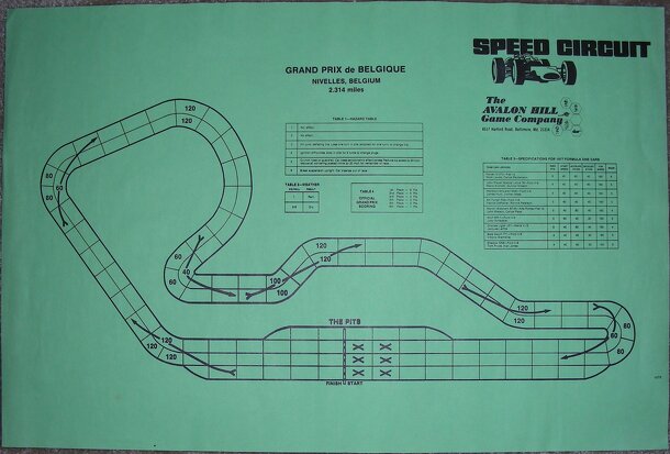 Grand Prix de Belgique (Nivelles, Belgium). This is an official Avalon Hill expansion map for the Speed Circuit game. Also contains specifications for 1977 formula one cars to allow them to be used in Speed Circuit. Was an insert in All Star Replay magazine Vol. 1, No. 2. The reverse side of the track sheet had the South African Grand Prix course. This is...