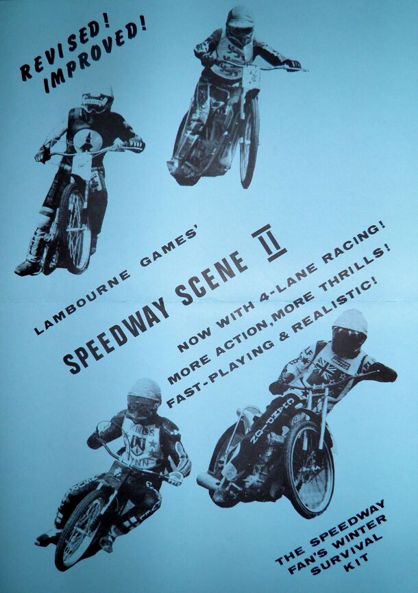 This is the ‘Owzat Games' version of an old favourite in the speedway and gaming world, Speedway Scene II. The realistic replay simulation of the wonderful and exciting world of top class motor cycle speedway. Produced under licence from Lambourne Games.