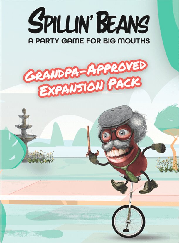 A Spillin' Beans: Grandpa-Approved Expansion Pack egy nagyszerű kiegészítő a Spillin' Beans társasjátékhoz, 3 - 12 játékos részére, az átlagos játékidő hosszabb, akár 15 - 120 perc is lehet. A társast felnőtteknek ajánljuk! A játékmenet erősen épít a kockáztatás és az akció/esemény mechanizmusokra.