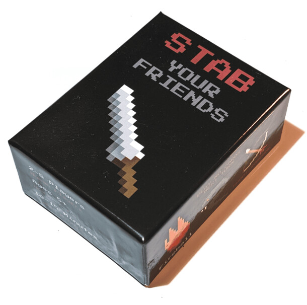 A Stab Your Friends egy nagyszerű társasjáték, 2 - 8 játékos részére, az átlagos játékidő rövid, csak 10 - 15 perc. A társast, 8 éves kortól ajánljuk kipróbálni. A játékmenet erősen épít a pakli tervezés, a játékos kiiktatás és a vedd el mechanizmusokra.