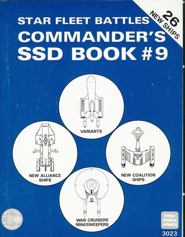An expansion for the Star Fleet Battles: Commander's Rulebook. This SSD book is product number TFG3023. Contains 45 SSD (Ship System Display) sheets for Variants, War Cruisers, Mine Sweepers, New Alliance Ships and New Coalition Ships. 4-Federation, 4-Klingon, 4-Romulan, 4-Kzinti, 2-Isc, 4-Gorn, 4-Tholian, 2-Orion, 6-Hydran, 2-Andromedan, 4-Lyran, 1-Wyn...