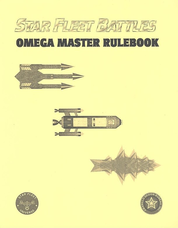 Part of the Star Fleet Battles Captain's Edition line. As described by ADB, the original 2007 release of the Omega Master Rulebook contained over 320 pages (bagged, loose leaf, with a black-and-white cover) and contained every rule, chart, scenario, and ship description from the first four Omega modules; Omega tactics; updated sequence of play listing...