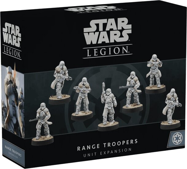Star Wars: Legion – Range Troopers features seven Range Trooper miniatures that give players a durable new Imperial Special Forces option that can stride into the thick of battle while unleashing their powerful E-10R Blaster Rifles. These miniatures are joined by a heavy weapon miniature that further accentuates the unit's potent firepower. Able to easily traverse difficult terrain, the Range Troopers are accompanies by six upgrade cards that invite players to augment them to fit their own strategy.