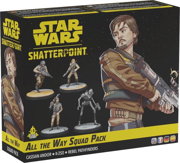 The All The Way Squad Pack brings the Rebel characters from Rogue One: A Star Wars Story to Star Wars: Shatterpoint. The incredibly quotable Cassioan Andor is Joined by K2S0 and the Rebel Pathfinders in this exciting and thematic squad pack.