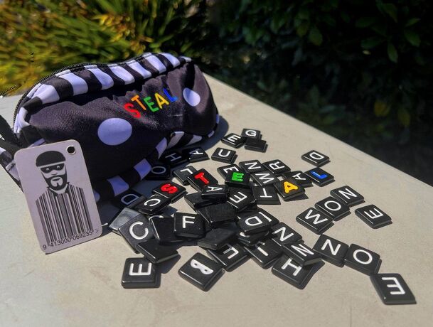 Steal is a fast and furious new letter game of cunning, treachery and outright theft! A hugely exciting game from New Zealand, with all letter tiles contained in a handy mask-shaped fabric bag, allowing it to be played almost anywhere. Steal is suitable for 2-8 players of all ages, easy to learn but more difficult to master.