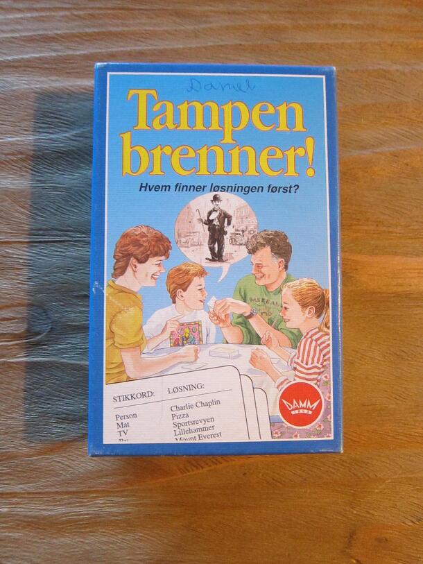 Tampen brenner! is a Norwegian trivia game consisting of 110 cards with 550 tasks. Each turn, a player picks a card and reads the hint aloud. The players can now ask "yes/no"...