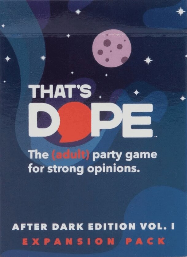 That's Dope: After Dark Edition Vol. 1 can be combined with the That's Dope: The Party Game for Strong Opinions base game.
