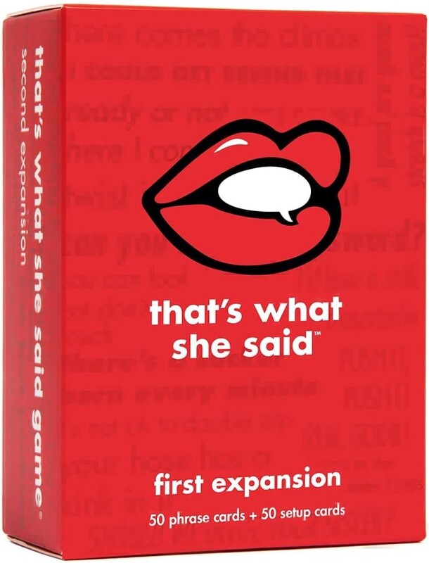 That's What She Said Game – First Expansion (Adults Only) is a card expansion for the party game That's What She Said Game. It adds additional setup and response cards featuring explicit adult humor intended for mature audiences. These cards are mixed into the base game deck to increase variety and intensity of gameplay.