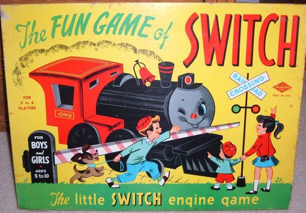 The Fun Game of Switch was published by Built Rite and is for Boys & Girls Ages 5-10. It is a simple spin-and-move game with 'Switches' that can alter your direction of movement....