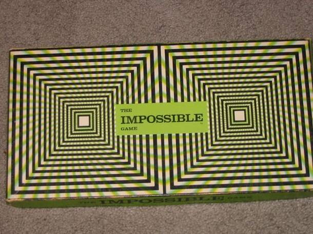 A player who has filled a row of symbols picks up the six dice and places a strip of cardboard over that row of symbols and continues to play, attempting to match dice with symbols in any of the remaining rows. The same player continues to play as long as he can complete an uncovered row of symbols. As rows are filled (or covered) the game becomes more challenging. Filling a row in the three rolls becomes more difficult. If a player does succeed in covering all the rows without ever giving up the dice, he has achieved the IMPOSSIBLE.