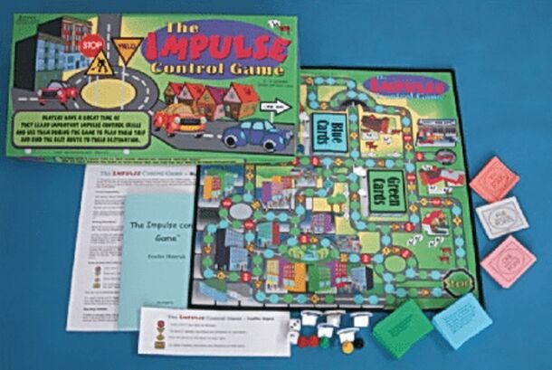 The IMPULSE Control Game is a fun therapeutic and educational board game designed to help young people with ADD, ADHD, and other conditions involving impulse control problems. The game teaches seven specific skills that have been proven in the research literature to help impulsive children control their impulses, make good decisions, and avoid actions that are detrimental to themselves and others.