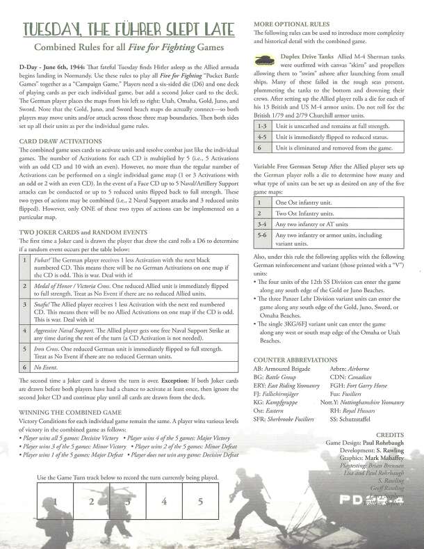 A set of rules and scenario information that combines the "Five for Fighting" series of Pocket Battle Games from Against the Odds. released as part of a D-Day anniversary...