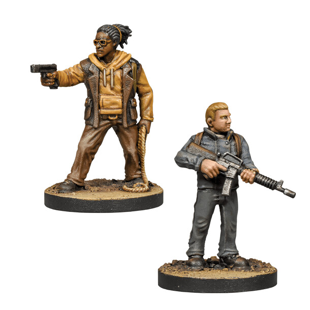 Morgan Jones and his son Duane were Rick's first human contact after he returned home. What Rick found was Duane's shovel! Morgan and Duane then accompanied Rick to the Cynthiana Police Dept. where they were outfitted with rifles and bullets. This booster pack contains 3 Unique, collectible miniatures allowing you to add Morgan and Duane to your games...
