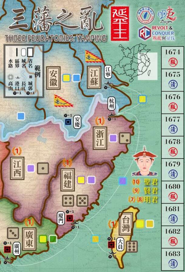 三藩之亂:延平王 ("Three Feudatories: Yanping") is a 1-2 player strategic level wargame to simulate the Revolt of Three Feudatories in Qing dynasty in China. There are 10 rounds in one...