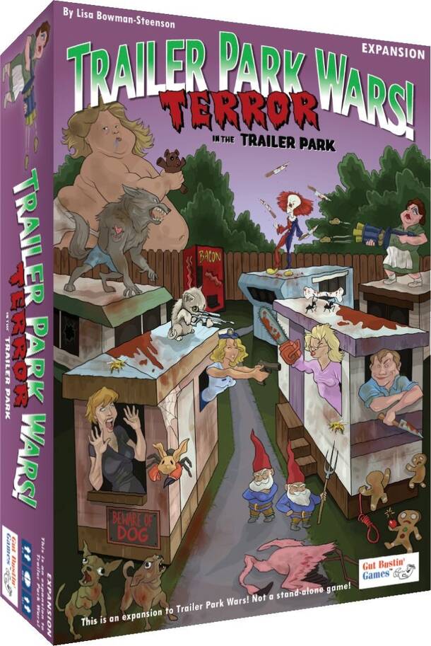 A Trailer Park Wars! Expansion: Terror in the Trailer Park egy könnyen tanulható kiegészítő a Trailer Park Wars társasjátékhoz, 2 - 6 játékos részére, az átlagos játékidő rövidebb, csak 1 óra. A társast, a könnyebb tanulhatósága ellenére, csak 13 éves kortól ajánljuk kipróbálni. A játékmenet erősen épít a moduláris tábla és a vedd el mechanizmusokra.